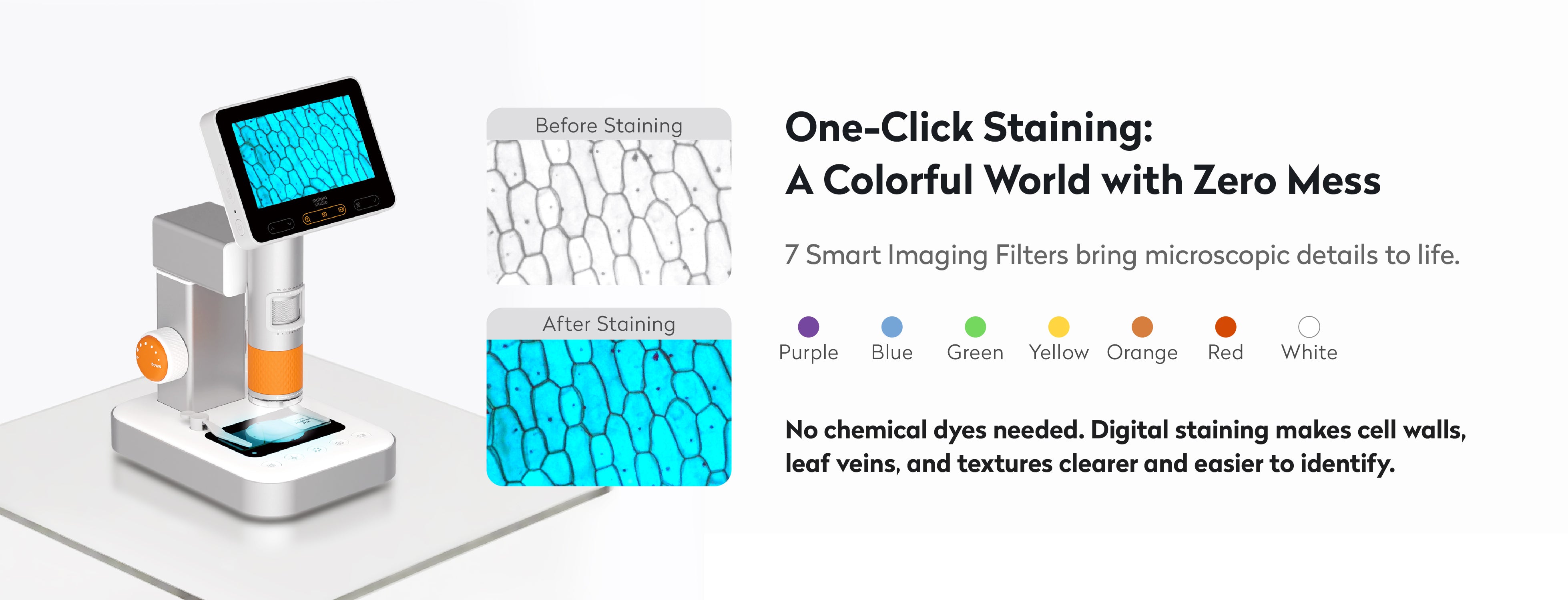 • FUNCIÓN DE TEÑIDO INTELIGENTE: Este microscopio digital portátil cuenta con teñido inteligente para un ajuste de color en tiempo real, mejorando la claridad durante las observaciones.